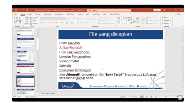 Sidoarjo, Dalam upaya meningkatkan kualitas literasi akademik mahasiswa, Perpustakaan Universitas Muhammadiyah Sidoarjo (UMSIDA) menyelenggarakan kegiatan Online Literacy Class (OLC) bertajuk “Standar Penulisan Karya Ilmiah untuk Mahasiswa.” Acara ini diikuti oleh mahasiswa dari berbagai program studi dan dilaksanakan secara daring melalui platform digital. Kegiatan tersebut menghadirkan dua narasumber berpengalaman, yakni Bulqis Khumairo, S.IIP (Pustakawan UMSIDA) dan Dian Novita Fitriani, M.Hum (Widyaiswara Perpustakaan Nasional RI serta mahasiswa Program Doktor Ilmu Komunikasi Universitas...Read More