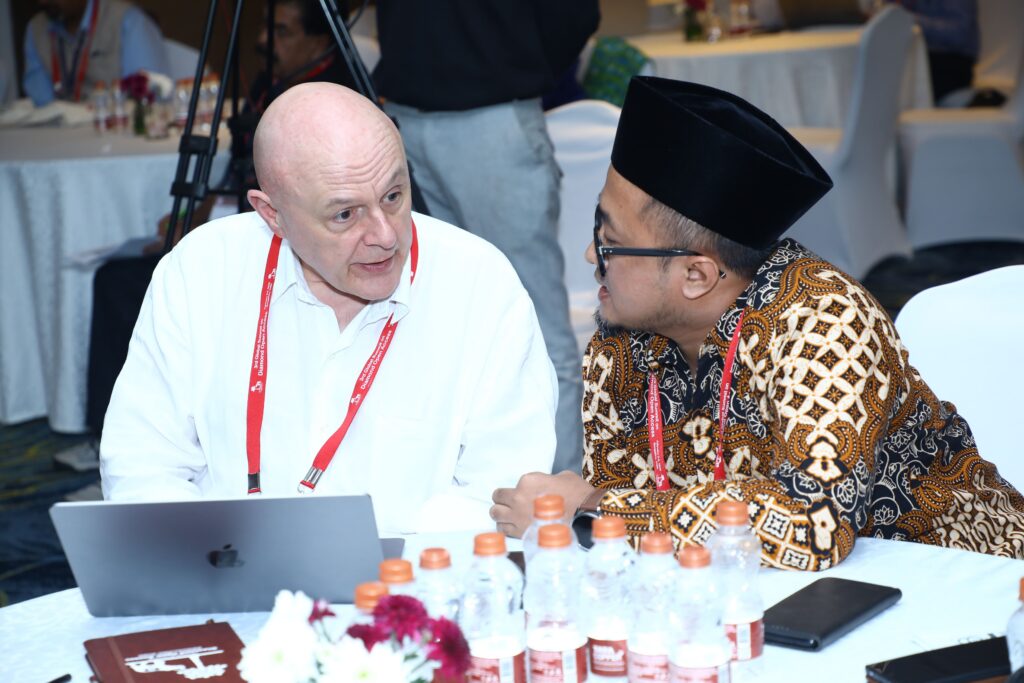 Gambar 1. Direktur Perpustakaan bersama dengan Johan Rooryck (Co-coordinator, European Diamond Capacity Hub at OPERAS Research Infrastructure) salah satu sponsor 3rd Global Summit on Diamond Open Access.
