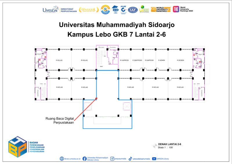 Ruang Baca Kedokteran yang berlokasi di RS Pendidikan Siti Khadijah Sepanjang dirancang khusus untuk menunjang kebutuhan akademik mahasiswa Fakultas Kedokteran UMSIDA. Dengan luas ±28 m², ruang baca ini dilengkapi dengan layanan digital dan koleksi literatur medis seperti e-book, jurnal ilmiah, dan sumber referensi kesehatan lainnya. Fasilitas ini mendukung proses belajar, penelitian, dan pengembangan kompetensi klinis secara optimal dalam lingkungan rumah sakit pendidikan.