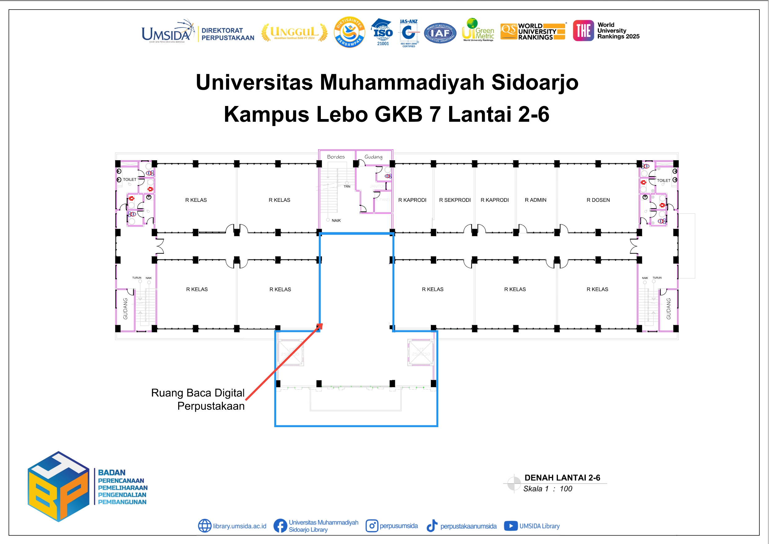 Perpustakaan Kampus 3 UMSIDA menyediakan Ruang Baca Digital sebagai sarana akses informasi berbasis teknologi. Meskipun menempati gedung yang berukuran 27 m² x 5 (lantai) dan memiliki tiga lantai, ruang baca ini dirancang untuk memberikan layanan digital yang efisien dan modern, mendukung kebutuhan belajar serta penelitian mahasiswa melalui akses ke koleksi e-book, jurnal elektronik, dan sumber informasi digital lainnya.