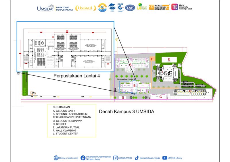 Perpustakaan Kampus 3 adalah perpustakaan terkecil di UMSIDA dengan luas gedung 255 m² dan satu lantai. Meskipun berukuran lebih kecil, perpustakaan ini masih menyediakan berbagai layanan dan fasilitas yang mendukung kegiatan belajar dan penelitian.